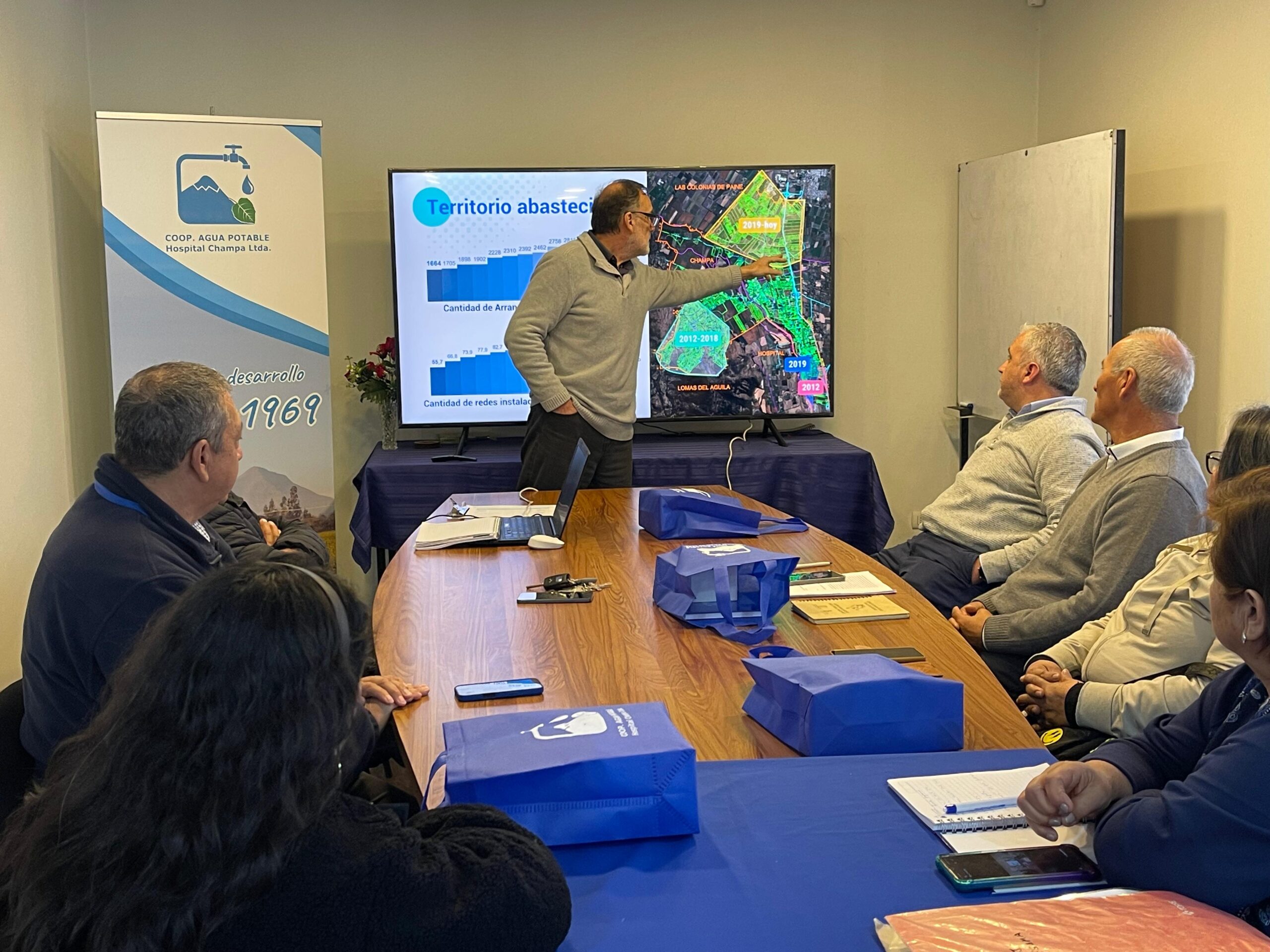Por nuestra parte, desde FESAN, compartimos la historia la historia, las distintas etapas de crecimiento y el sistema de producción y distribución de una de las cooperativas miembros de nuestra federación: la Cooperativa de Agua Potable Hospital Champa. Se abordaron en detalle temas como el esquema tarifario, la forma en que se han financiado proyectos de gran impacto, tales como Lomas del Águila y Las Colonias de Paine, así como también las alianzas establecidas con autoridades, federaciones, organizaciones locales, entre otros.